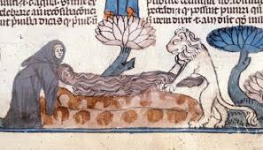 Father Zosimas could not think how to to bury the saint, for he was weak and had no tools. But just then a lion appeared, and willingly dug her grave with his paws. Covering St. Mary’s feet with tears and kisses, the holy elder committed her to the earth with prayers.